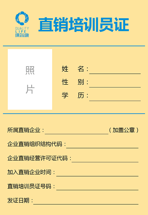 >直銷培訓(xùn)員證樣本
